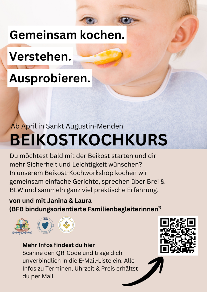 In unserem Beikostkochkurs kochen wir gemeinsam einfache Gerichte, sprechen über Brei & BLW und sammeln ganz viel praktische Erfahrung.